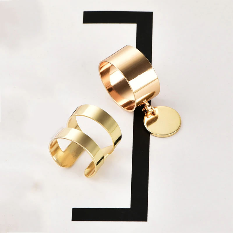 2 Pcs/ Set Classic Hollow Round Geometry Pendant Gold Adjustable Opening Ring