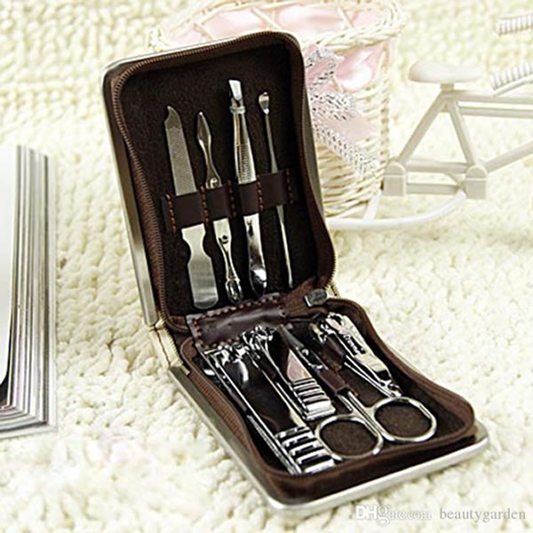 8pcs for 1set Manicure Pedicure Set Nail Scissors With Leather Case Stainless Steel Nail Clippers Cutters