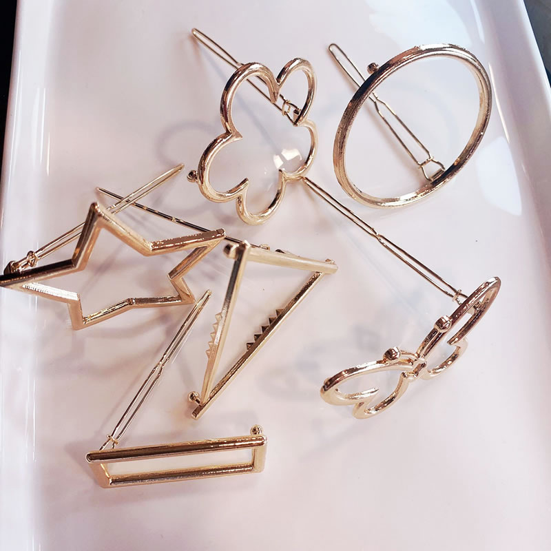 Simple Elegant Metal Geometric Round Triangle Star Butterfly Hair Clip 6pcs