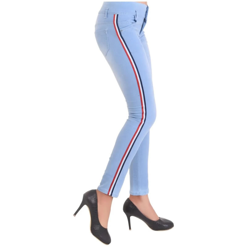 High Waist Side Stripe 2 Button Denim Women Fit Jeans