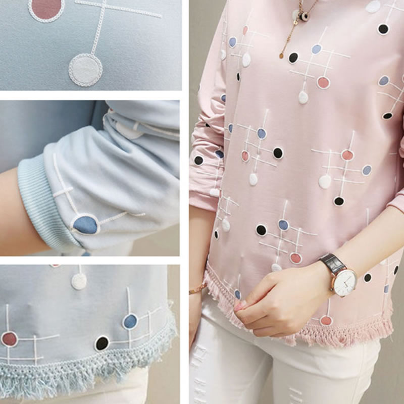 Cotton Top Ladies Long Sleeve Cotton Top Bottom Tassel Poleras Mujer