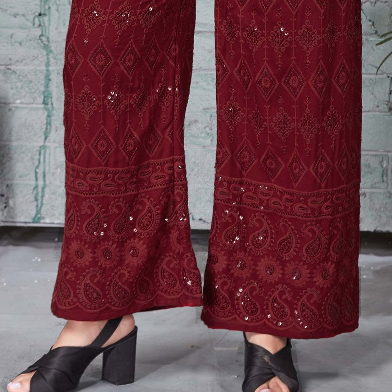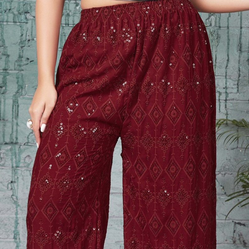 Littledesire Maroon Embroidered Sequence Work Straight Sequins Palazzo