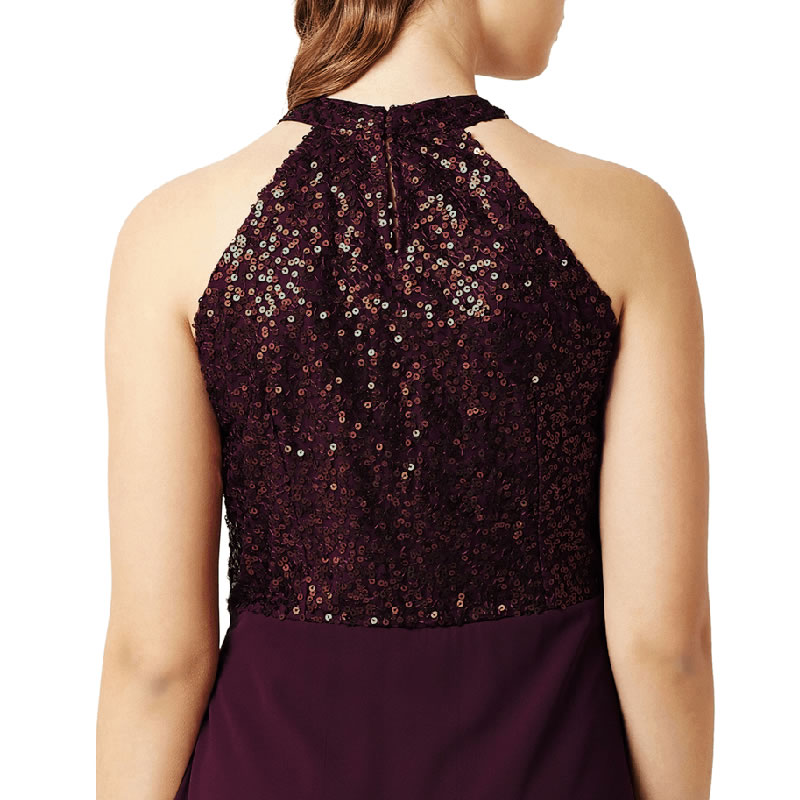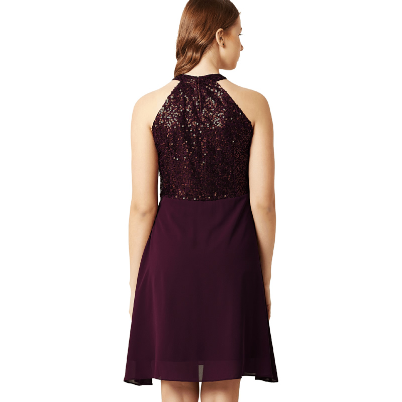 Purple Sequenced Keyhole Neck Embellished Fit and Flare Skater Dress