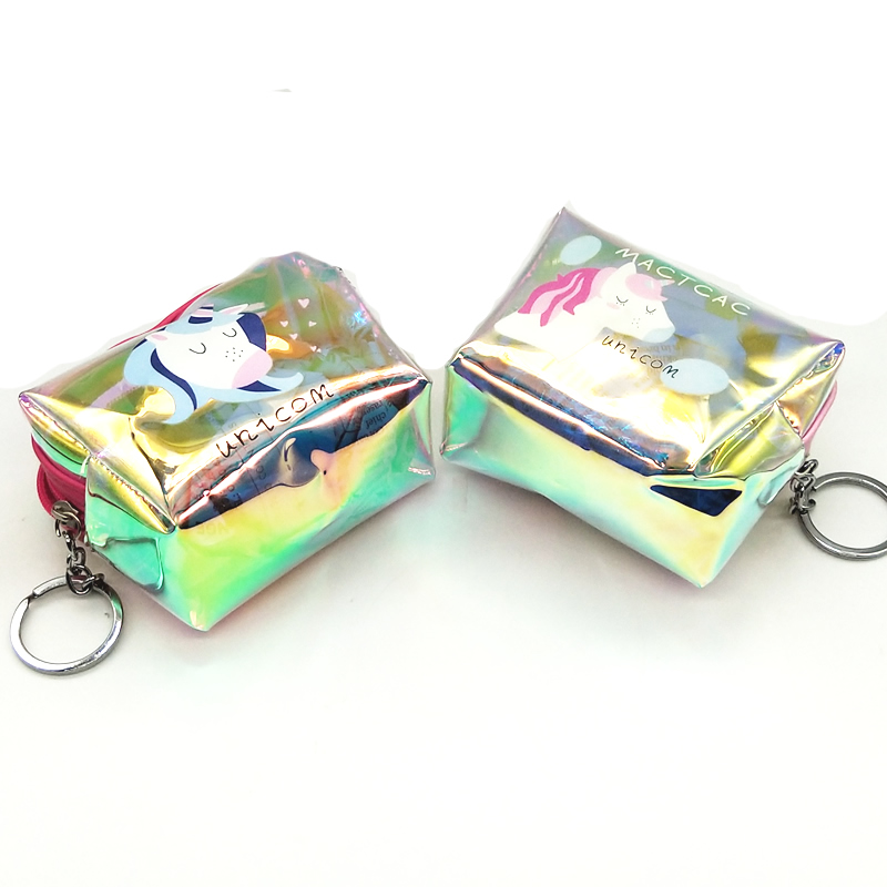Unicorn Zipper Mini Coin Transparent Wallet With Key Ring- 2 Pcs