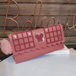 Butterfly Design Puff Ball Clutch Hasp Wallet